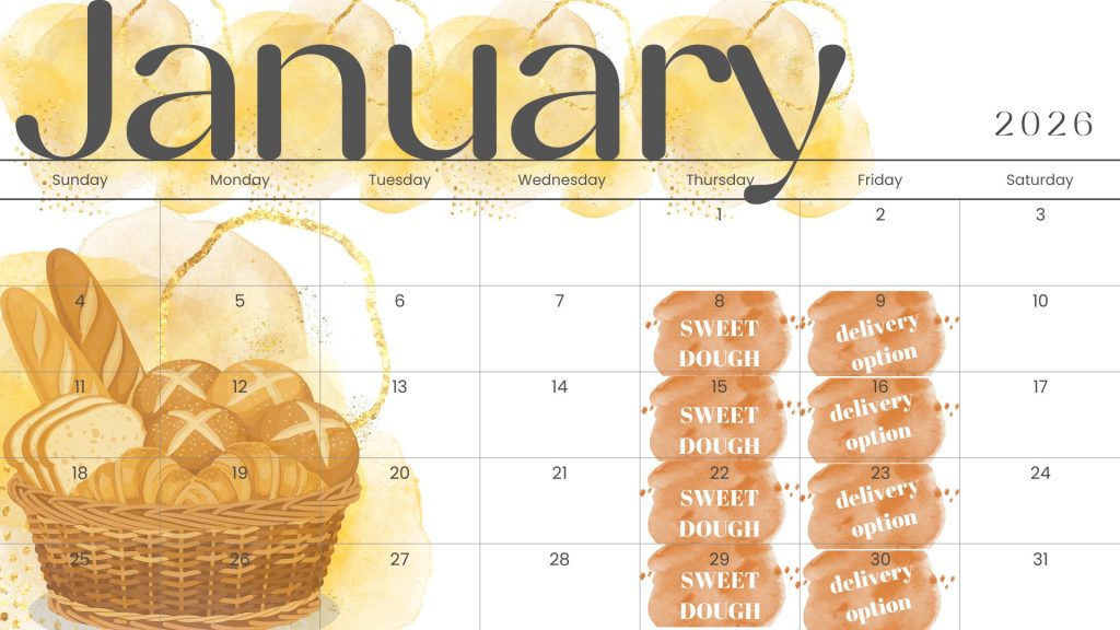 Calendar The Farmer’s Market is officially over, but you can shop through my Hotplate store to pick up bread on Thursdays or have it delivered to you on Fridays. Sign up for text alerts here to stay updated!